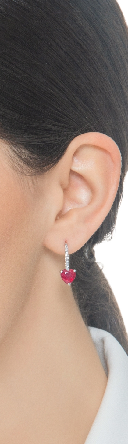 Pendientes en oro blanco de 18k con rubí en forma de corazón