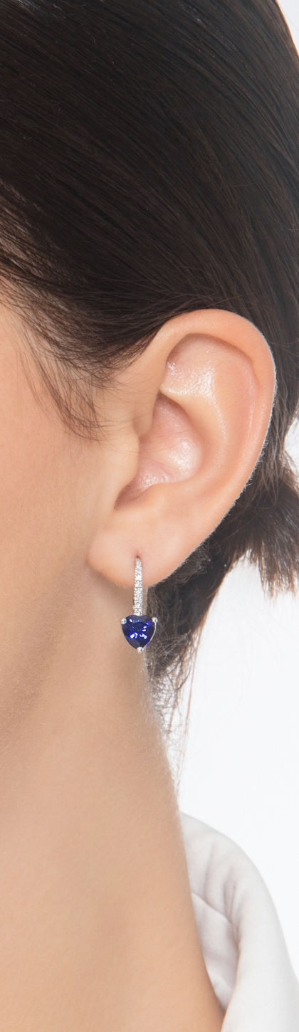 Pendientes en oro blanco de 18k con zafiro azul