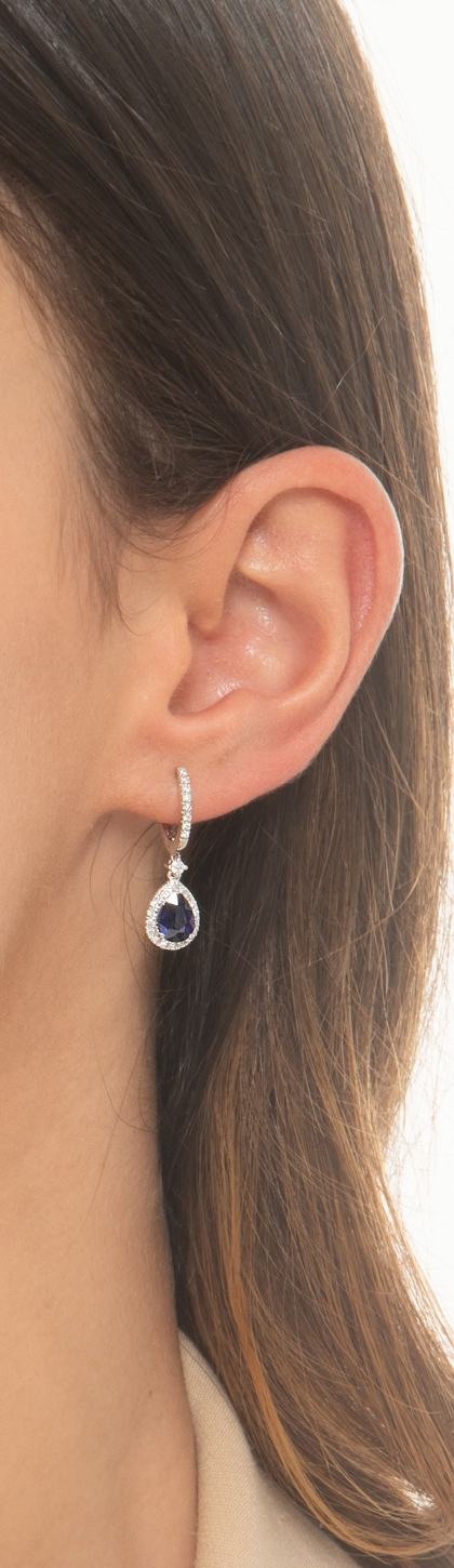 Pendientes en oro blanco de 18k con zafiros azules 7x5 mm