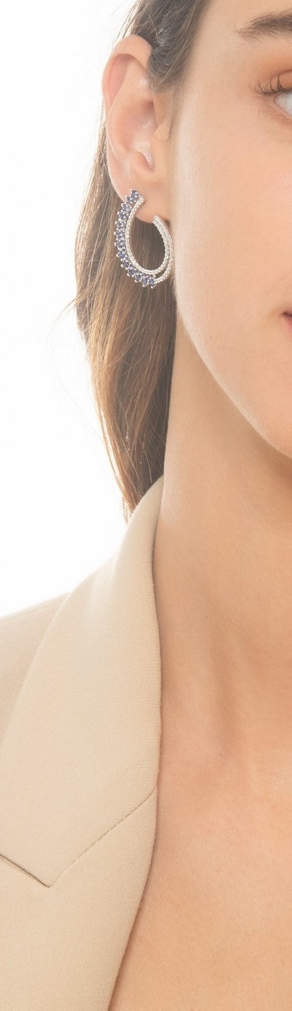 Pendientes en oro blanco de 18k en forma de gota con zafiros azules y diamantes