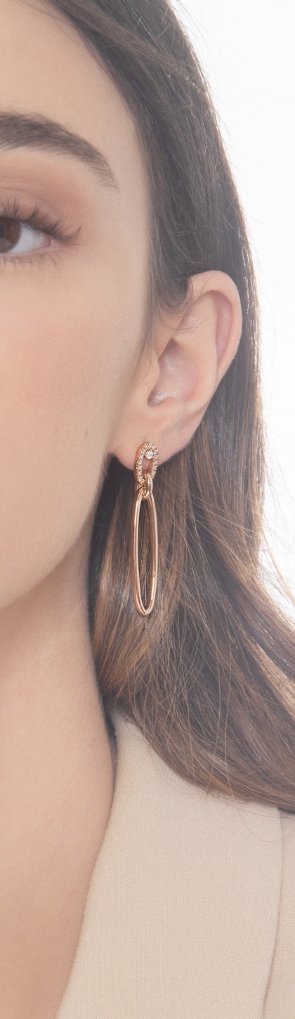Pendientes en oro rosa de 18k con colgantes ovalados y diamantes