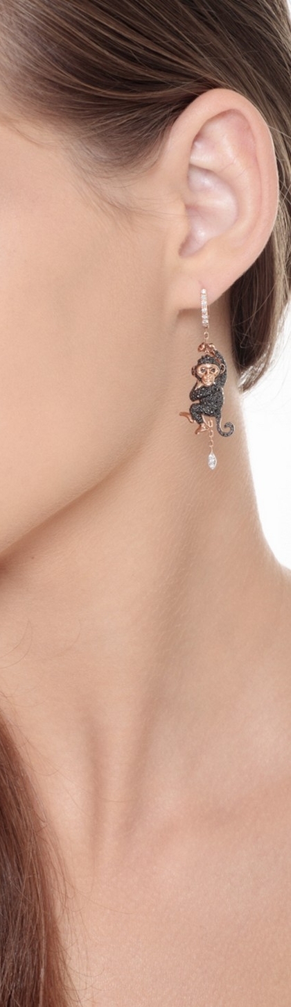 Pendientes en oro rosa y blanco con monos de diamantes negros