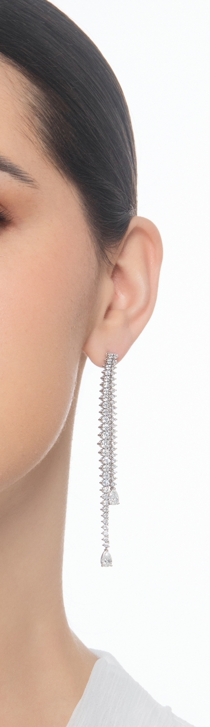 Pendientes largos oro blanco 18 quilates con diamantes gota GIA