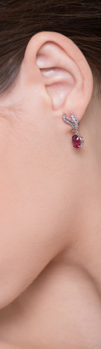 Pendientes mujer en oro blanco 18k con rubies y diamantes