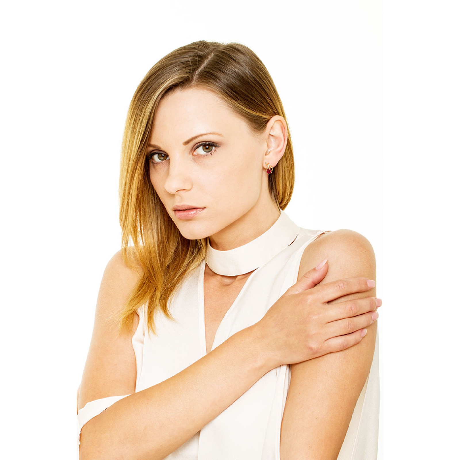 Pendientes oro amarillo 18K rubíes ovalados y diamantes