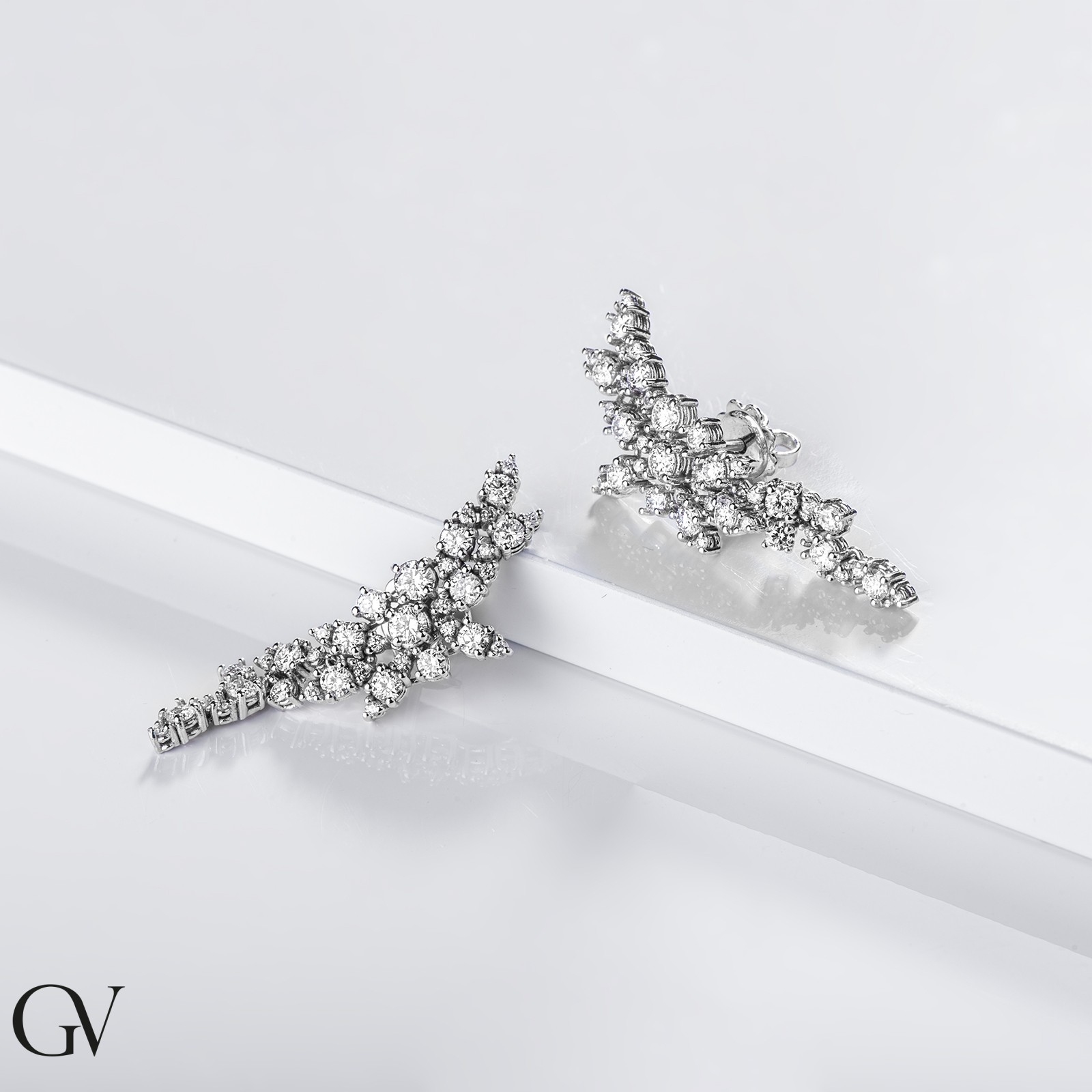 Pendientes oro blanco 18k con diamantes en cascada