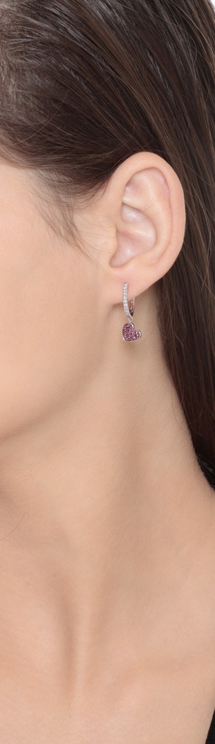 Pendientes oro blanco 18k corazón con diamantes y rubíes