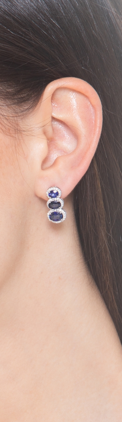 Pendientes oro blanco de 18k con zafiros ovalados y diamantes
