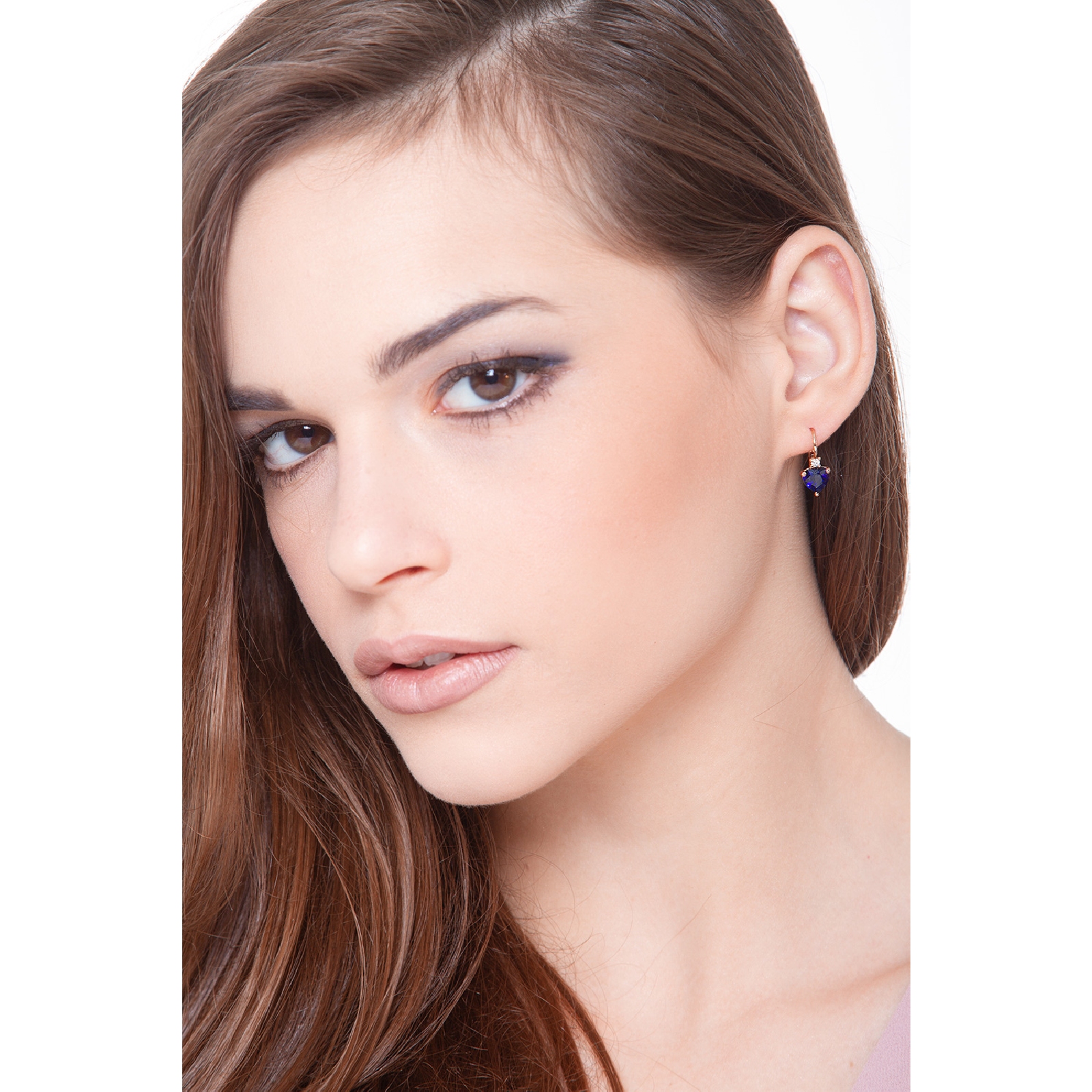 Pendientes oro rosa 18k con zafiros azules corazón y diamantes