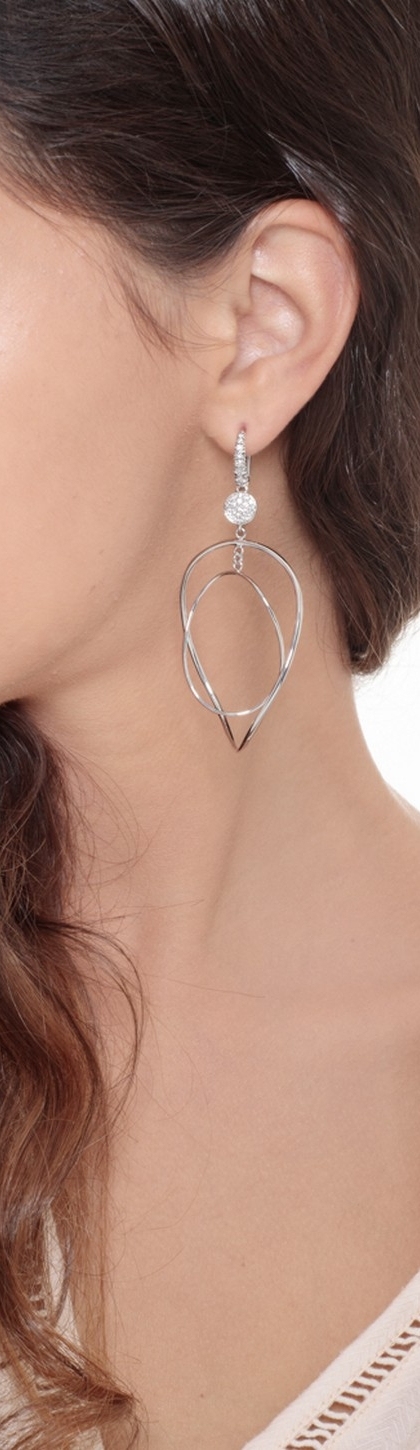 Pendientes ovalados colgantes en oro blanco 18k con diamantes