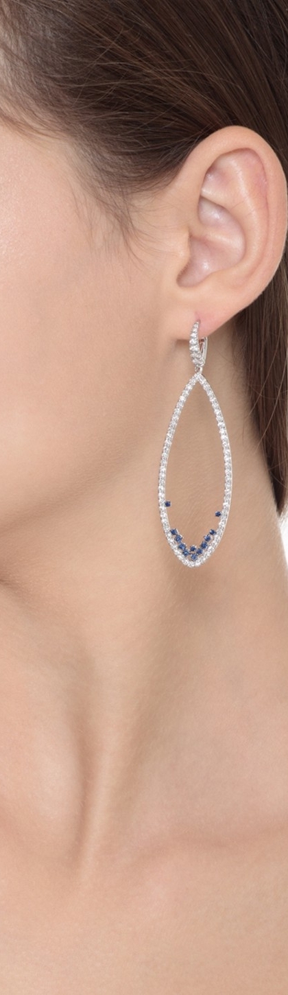 Pendientes ovalados en oro blanco 18k con diamantes y zafiros azules