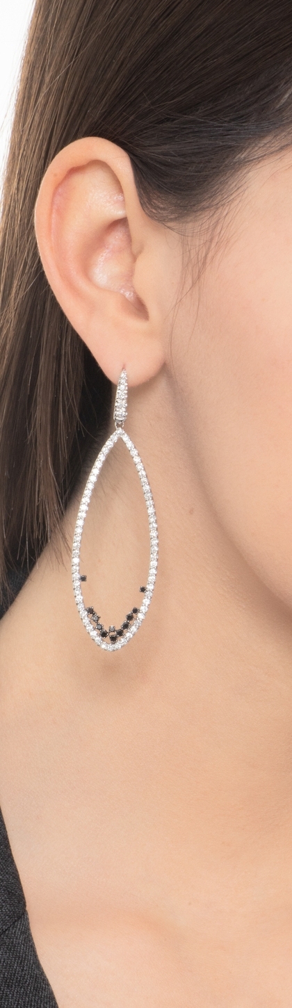 Pendientes ovalados en oro blanco con diamantes blancos y negros, 68 mm