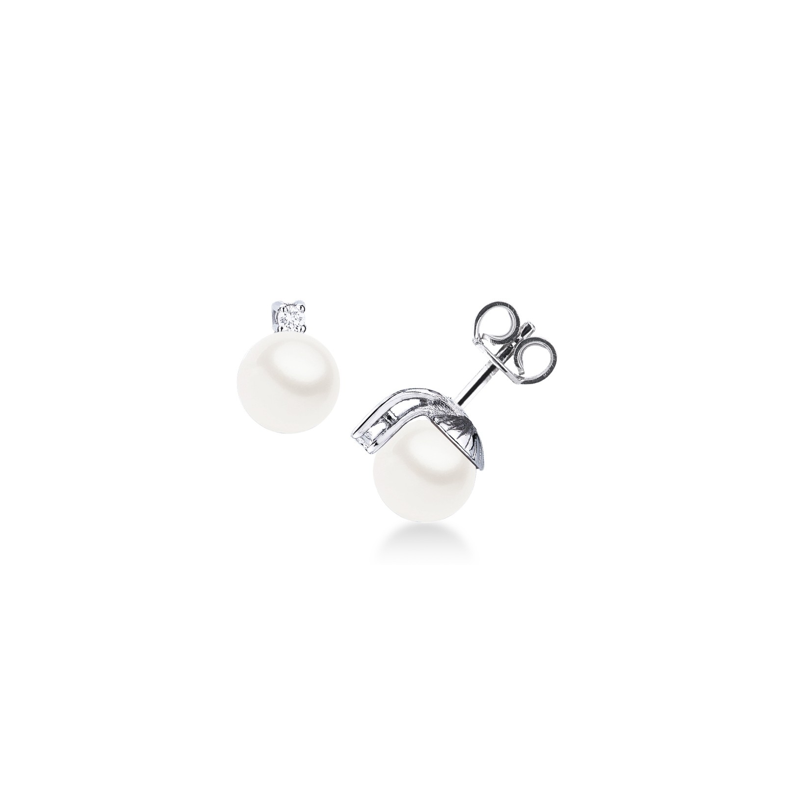 Pendientes de mujer en oro blanco 18k con perlas naturales y diamantes