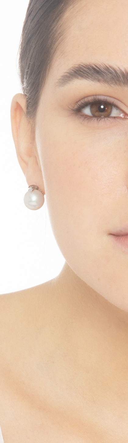 Pendientes de mujer en oro blanco 18k con perlas naturales y diamantes