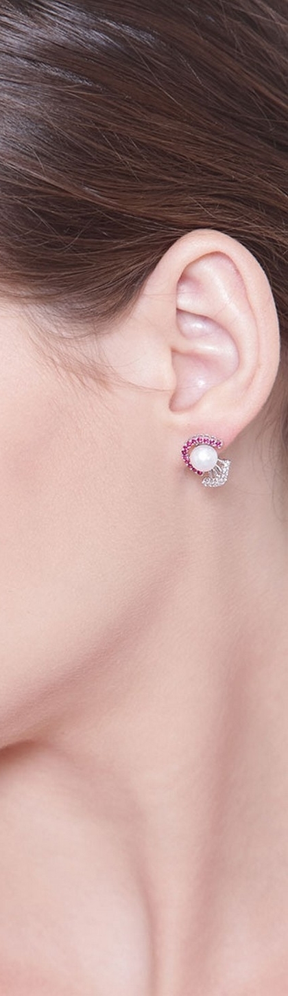 Pendientes de oro blanco de 18k con perlas, rubíes y diamantes