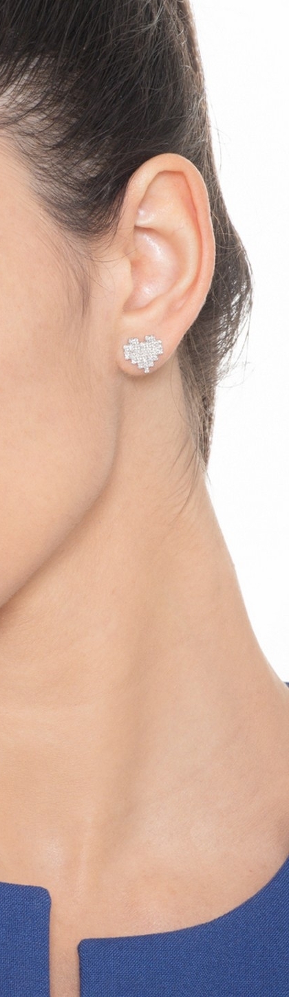 Pendientes a lóbulo oro blanco 18k corazón con diamantes