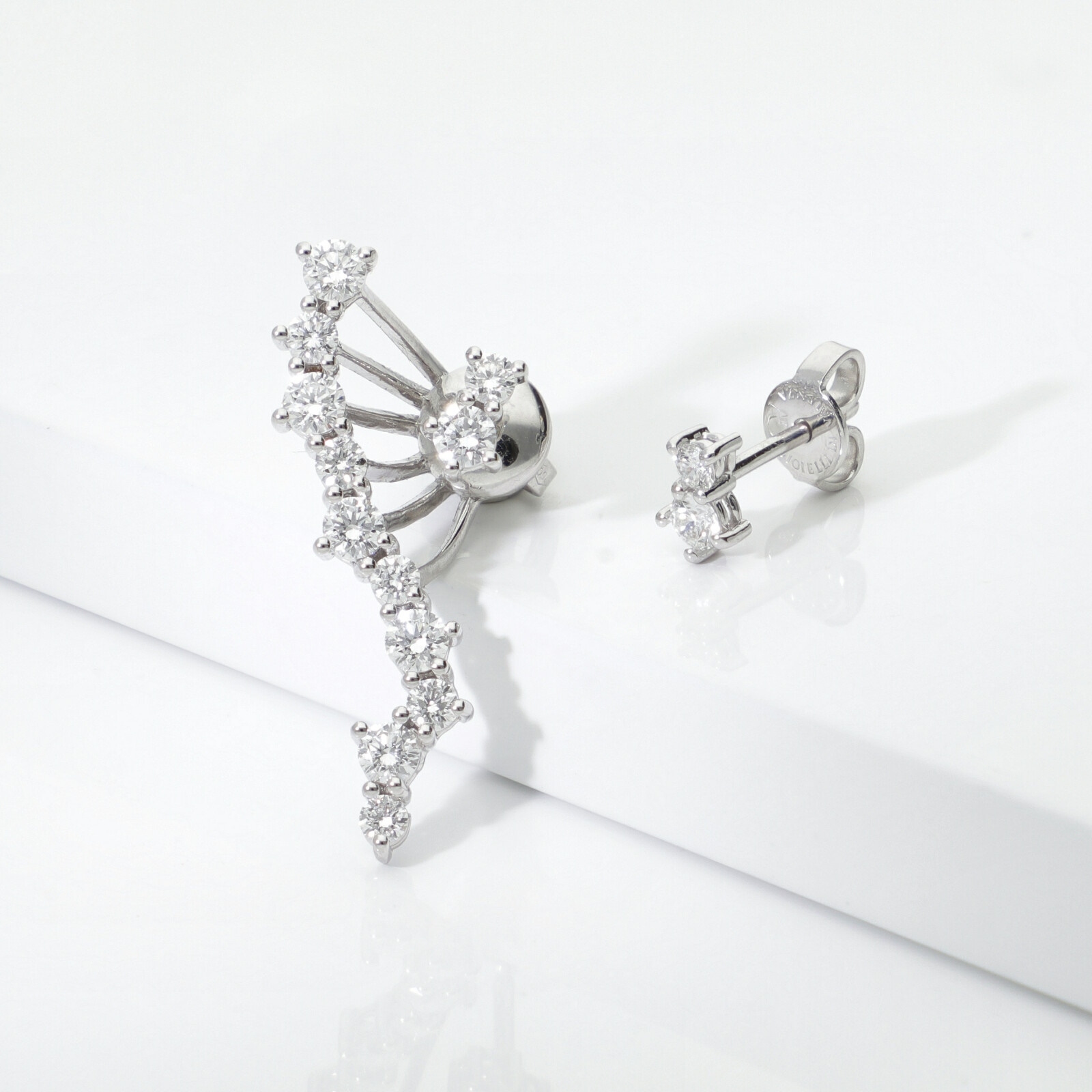 Pendientes asimétricos en Oro Blanco 18k con diamantes