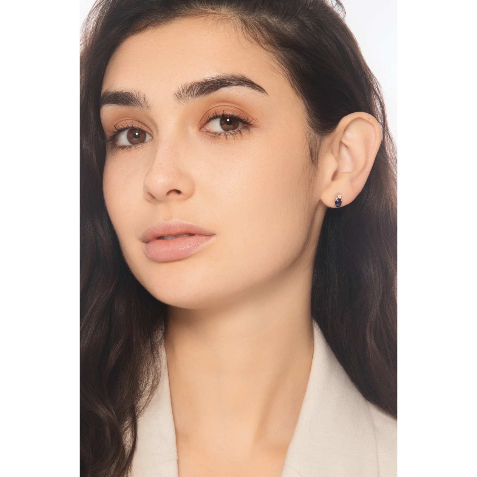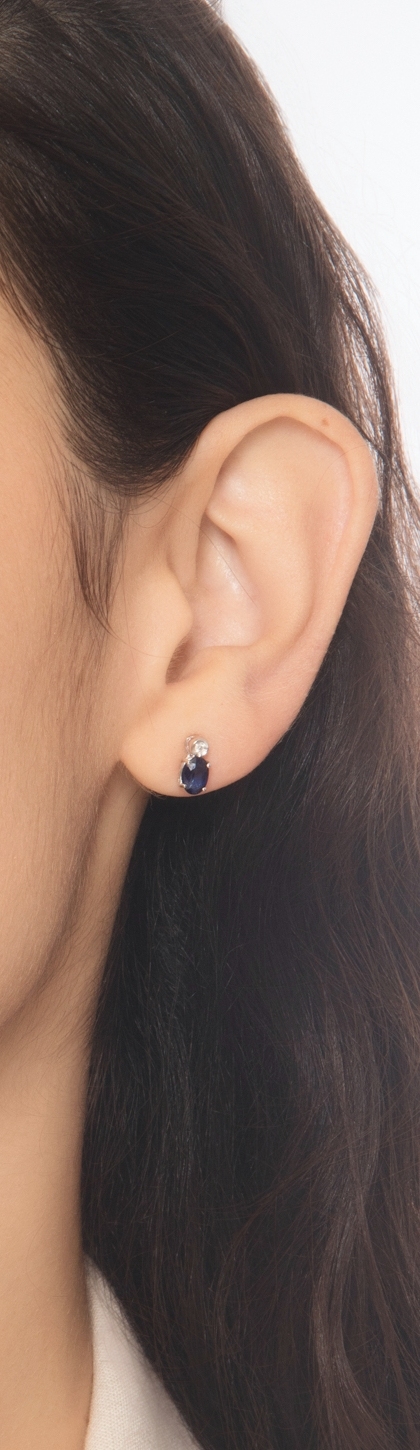 Pendientes boton en oro18k zafiro azul ovalada con diamante