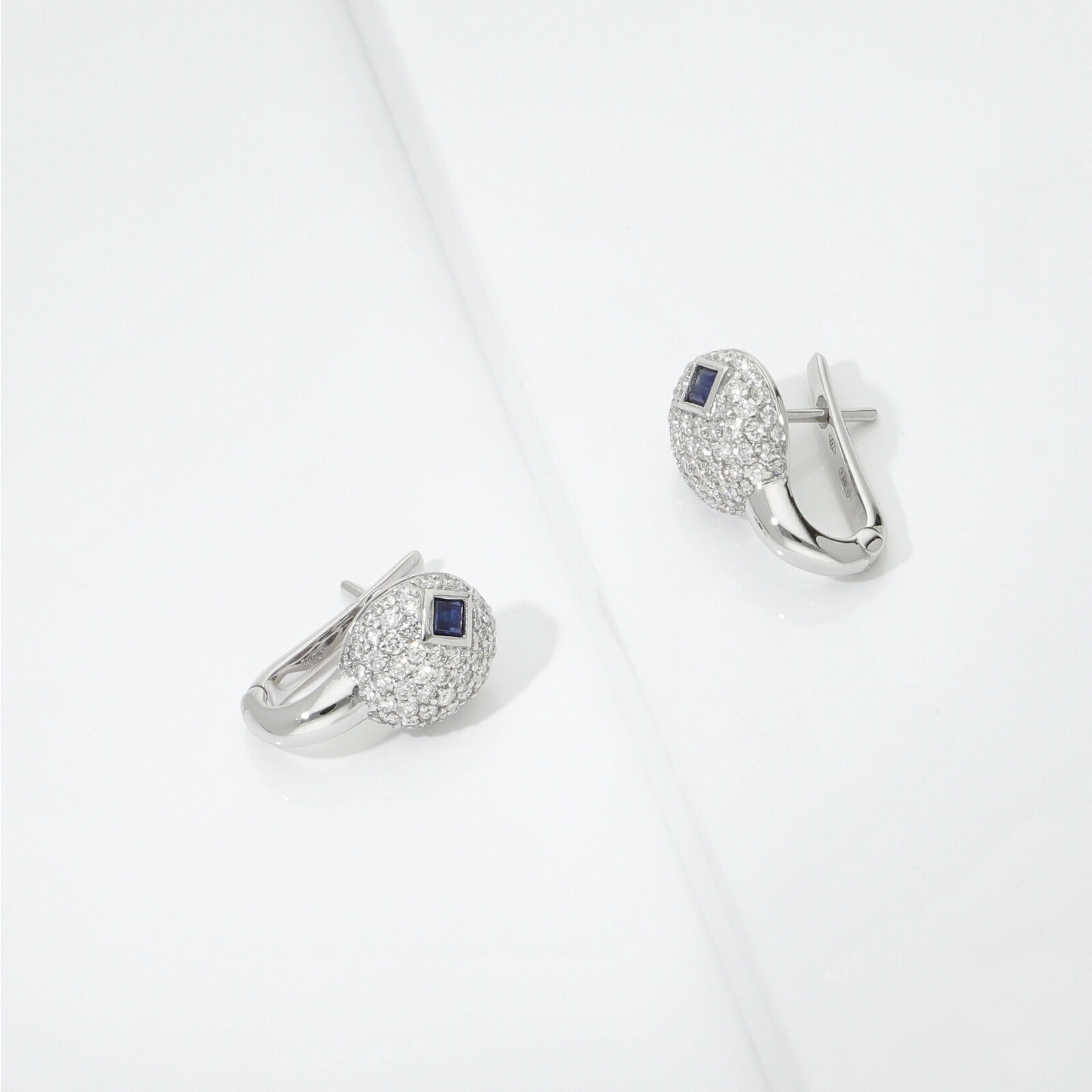 Pendientes con pavé ovalado en oro blanco, zafiro y diamantes