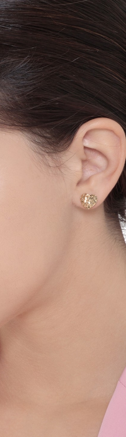 Pendientes en forma de corazón en oro amarillo 18k con acabado diamantado. Brillo y elegancia para un look sofisticado.