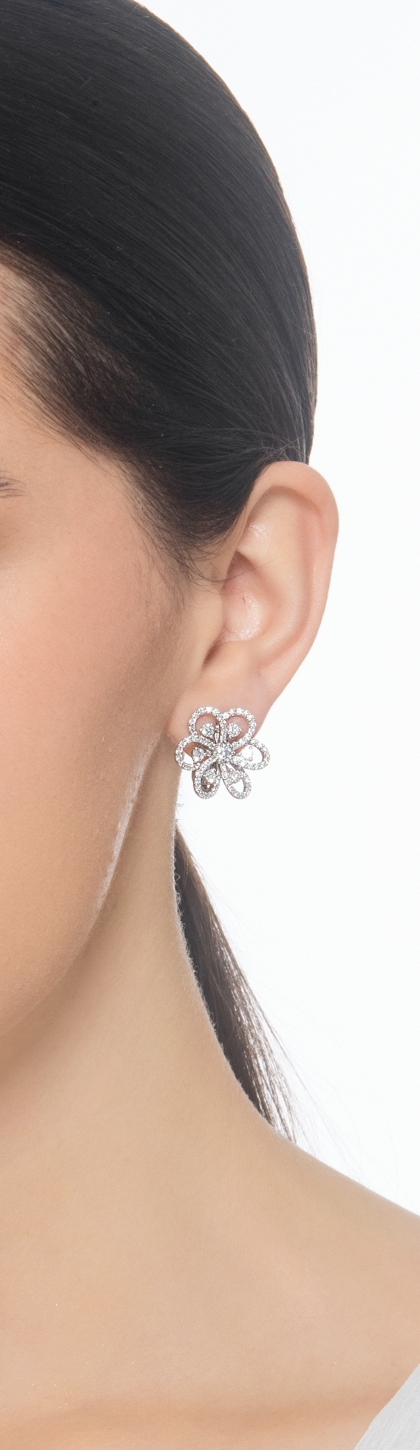 Pendientes en forma de flor en oro blanco 18k con diamantes