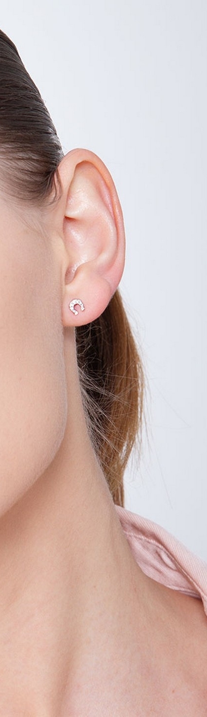 Pendientes en Forma de Herradura en Oro Blanco 18k con Diamantes