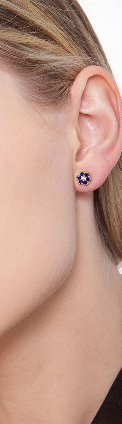 Pendientes en oro amarillo con diamantes y zafiros azules