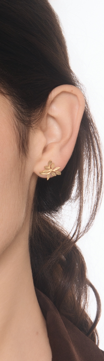 Pendientes hoja satinados y brillantes en oro amarillo 750