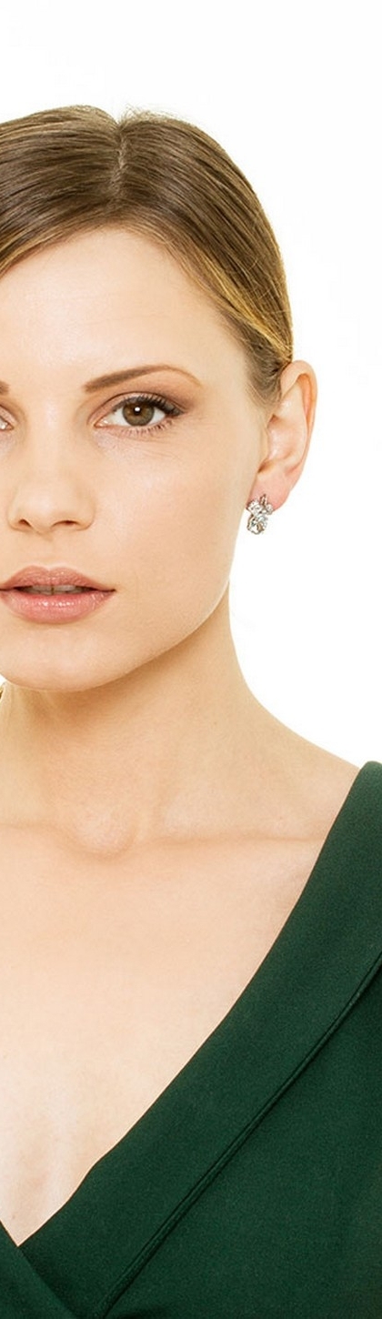 Pendientes hojas en oro blanco 18k con aguamarina y diamantes