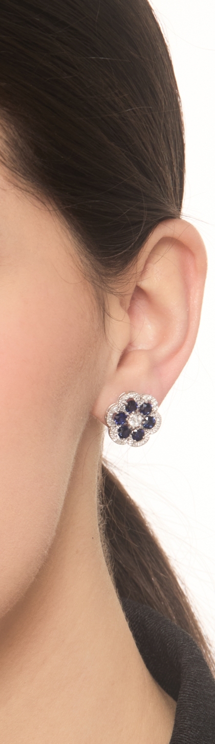 Pendientes oro 18k con flor zafiros azules y diamantes