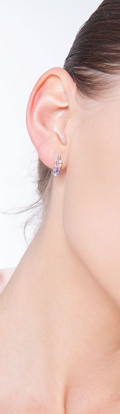 Pendientes Oro Blanco 18k amatistas ovales y diamantes