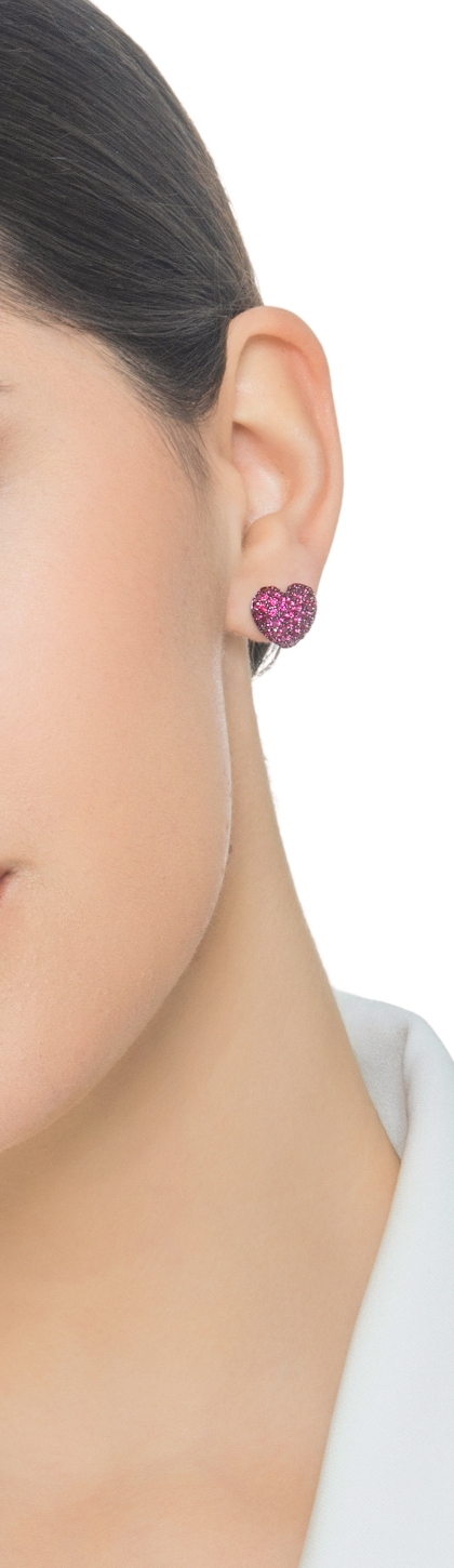 Pendientes oro blanco de 18 quilates con corazón de rubíes