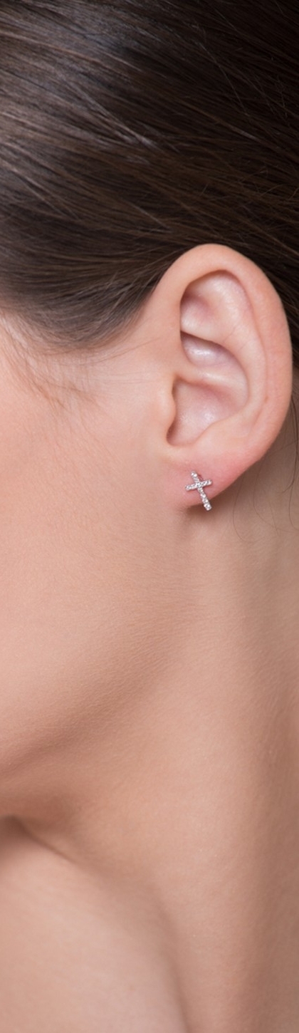 Pendientes oro blanco de 18 quilates cruces con diamantes