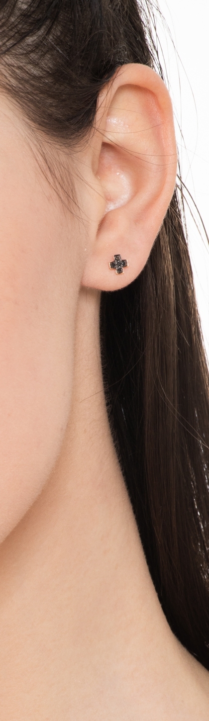 Pendientes tipo botón de oro rosa de 18 quilates con cruz de diamantes negros