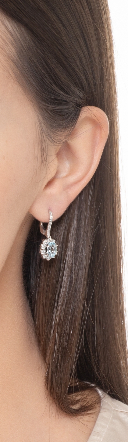 Pendientes en oro blanco 18k con aguamarina y halo diamantes
