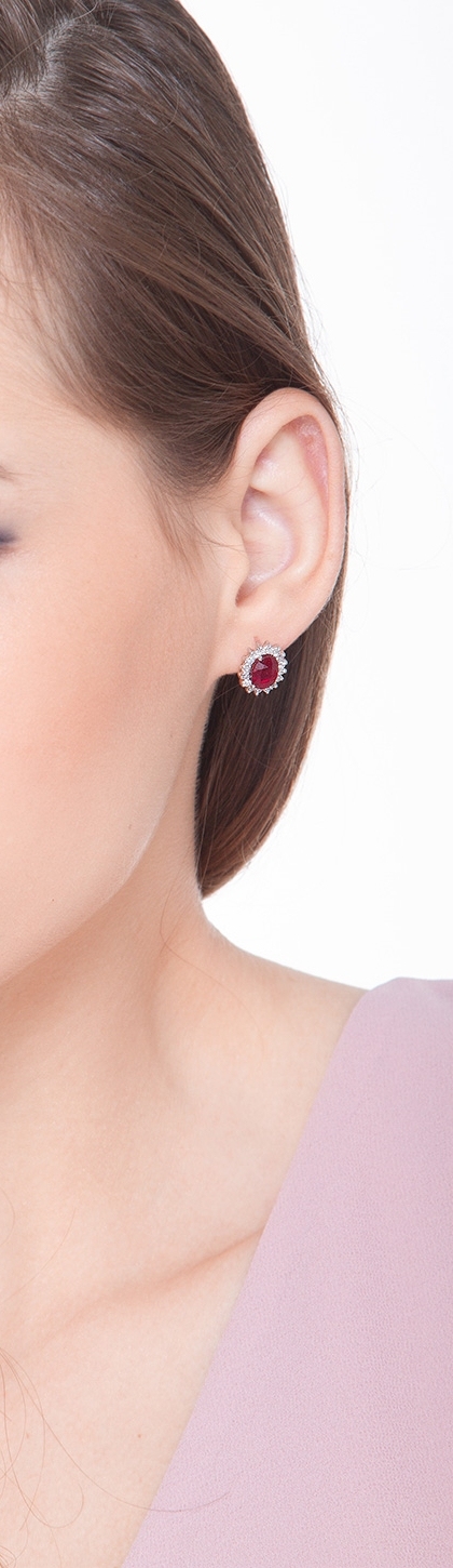 Pendientes en Oro Blanco 18k con Rubíes Ovalados y Diamantes