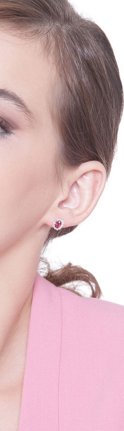 Pendientes halo de oro blanco 18 quilates con Rubíes y diamantes