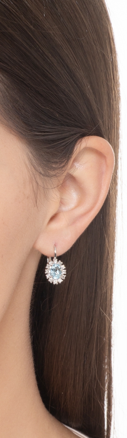 Pendientes halo de oro blanco de 18 quilates con una aguamarina y diamantes