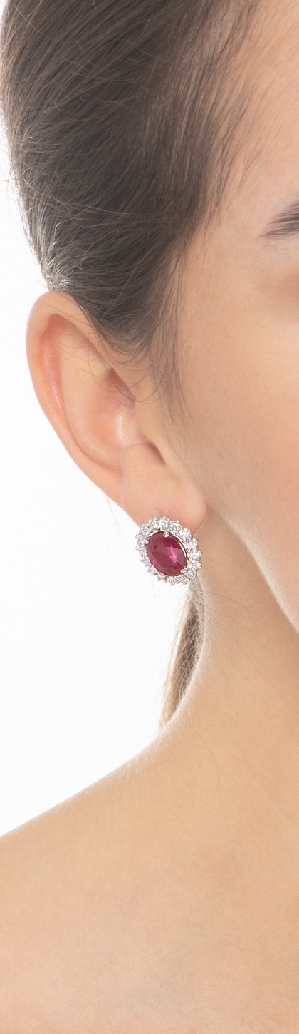 Pendientes halo oro blanco 18 quilates con rubíes ovalados y diamantes