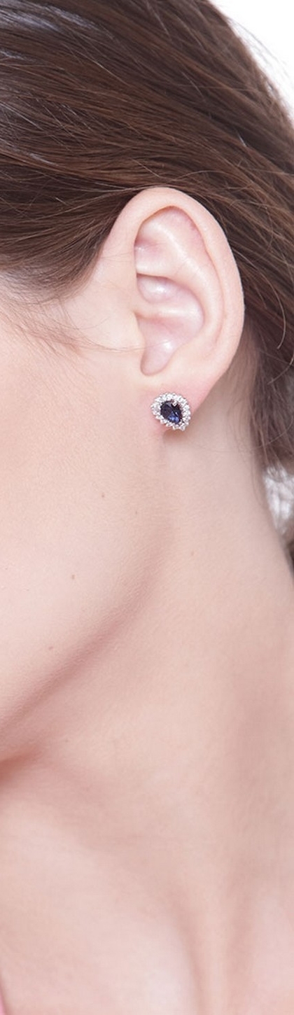 Pendientes oro blanco 18K zafiros gota y diamantes