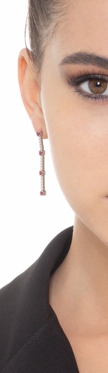Pendientes en oro blanco de 18k con rubíes y diamantes alternados