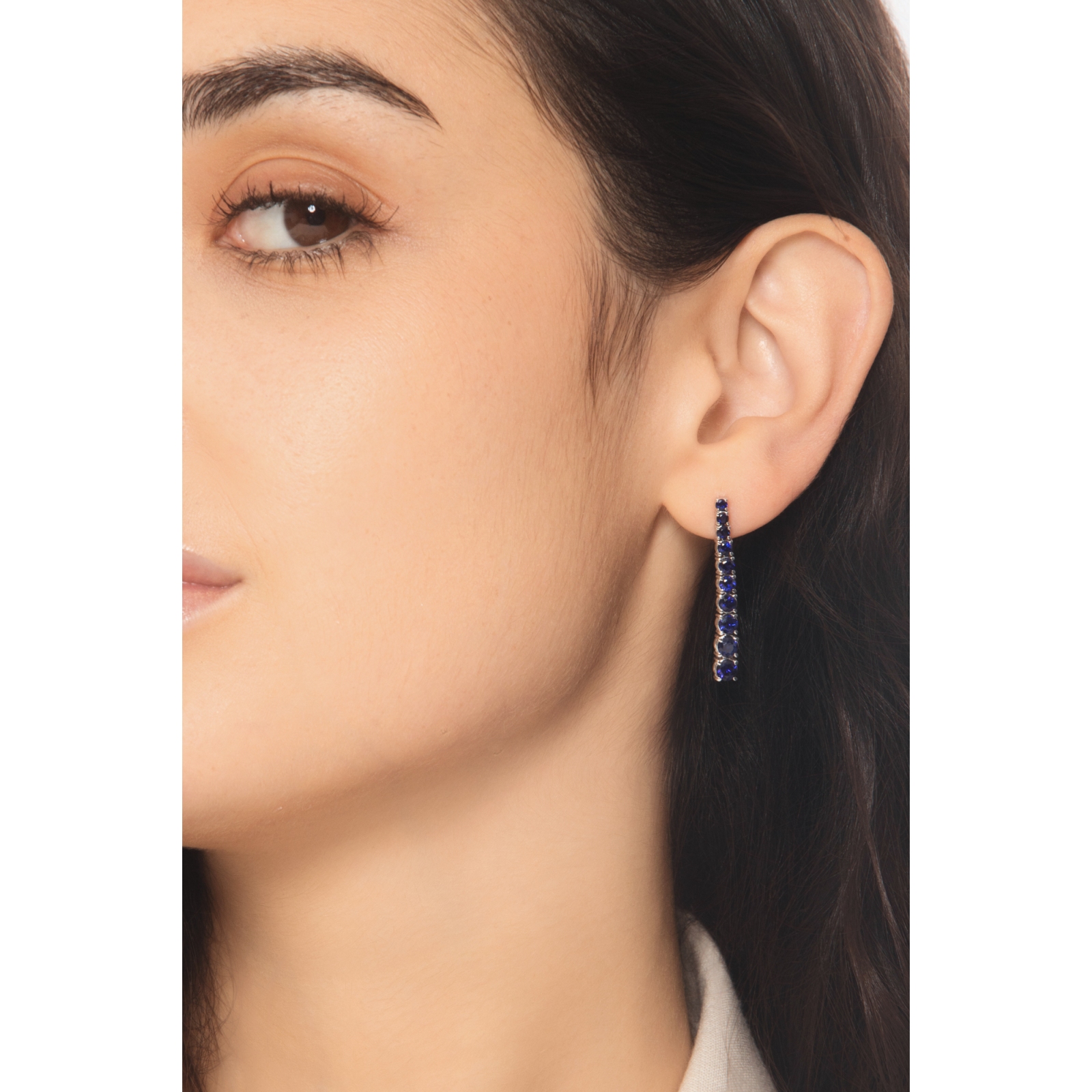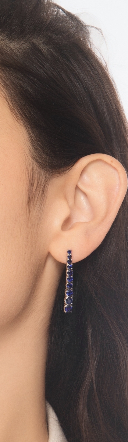 Pendientes tennis escalonados en oro blanco 18k con zafiros azules