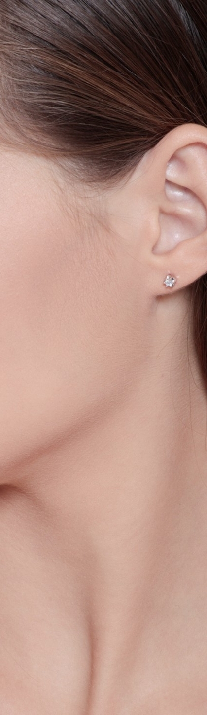 Pendientes oro blanco de 18 kilates solitario con 6 garras y diamantes de 0,12 qt