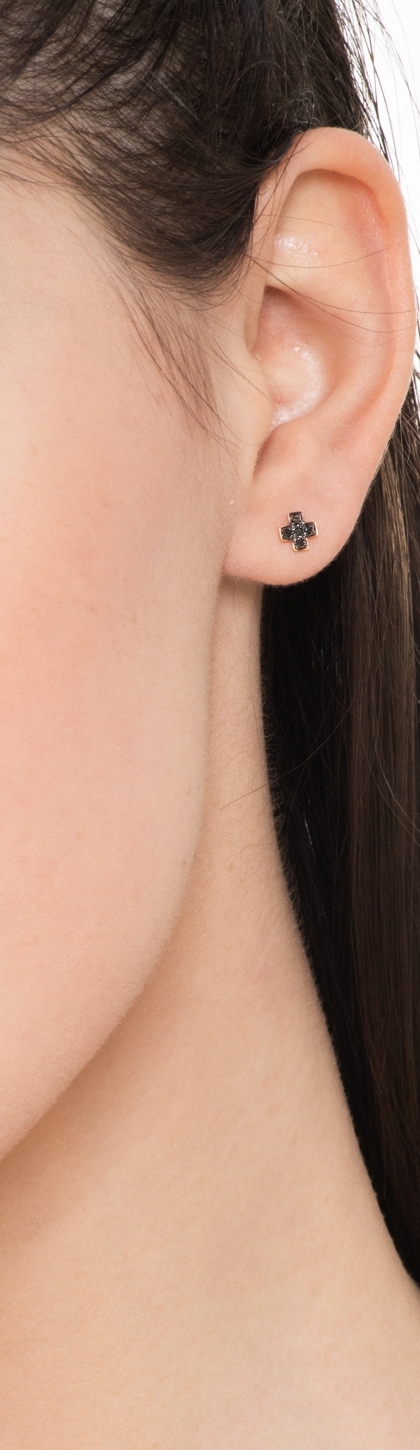 Botón mono en oro rosa de 18k con cruz de diamantes negros y puntas brunidas