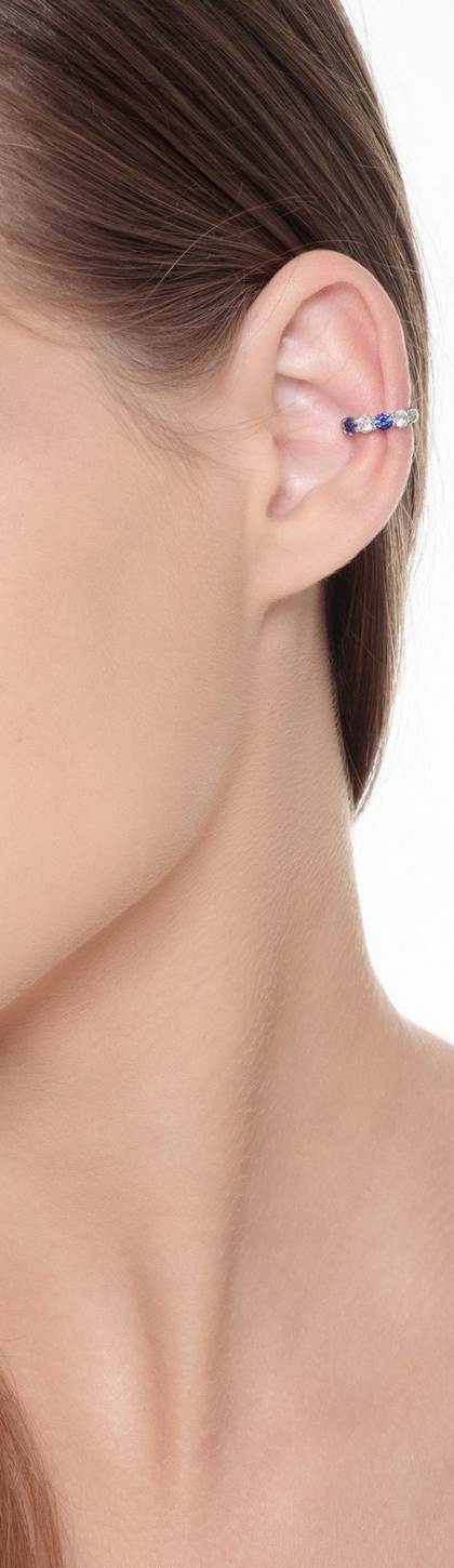 Ear cuff en oro blanco 18 ct con diamantes y zafiros azules