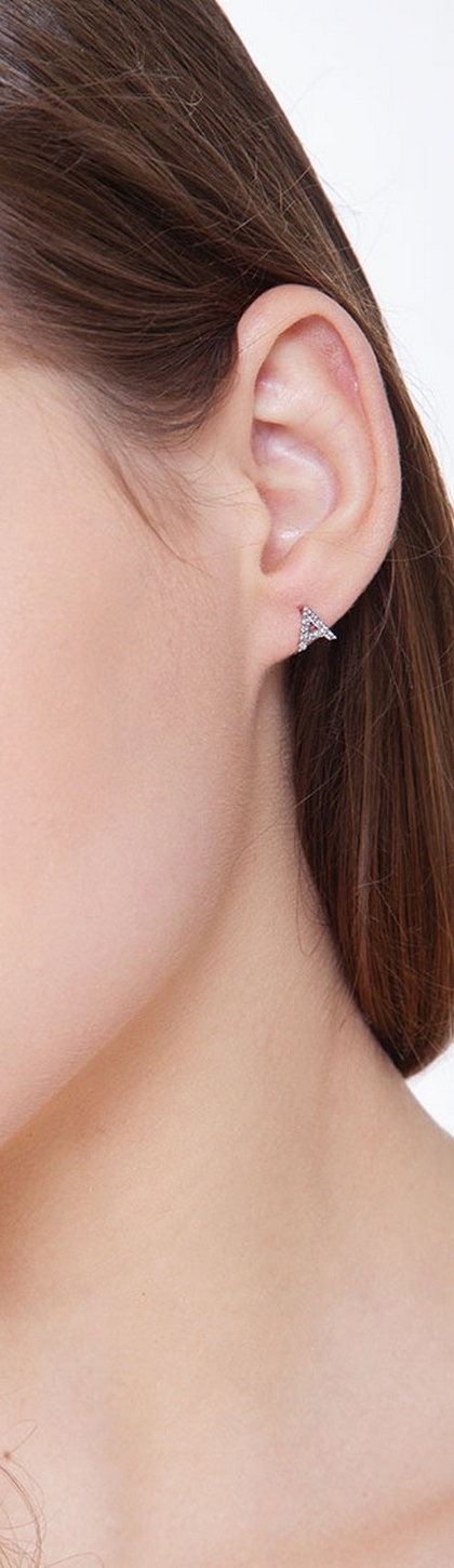Pendiente de botón con letra A en diamantes
