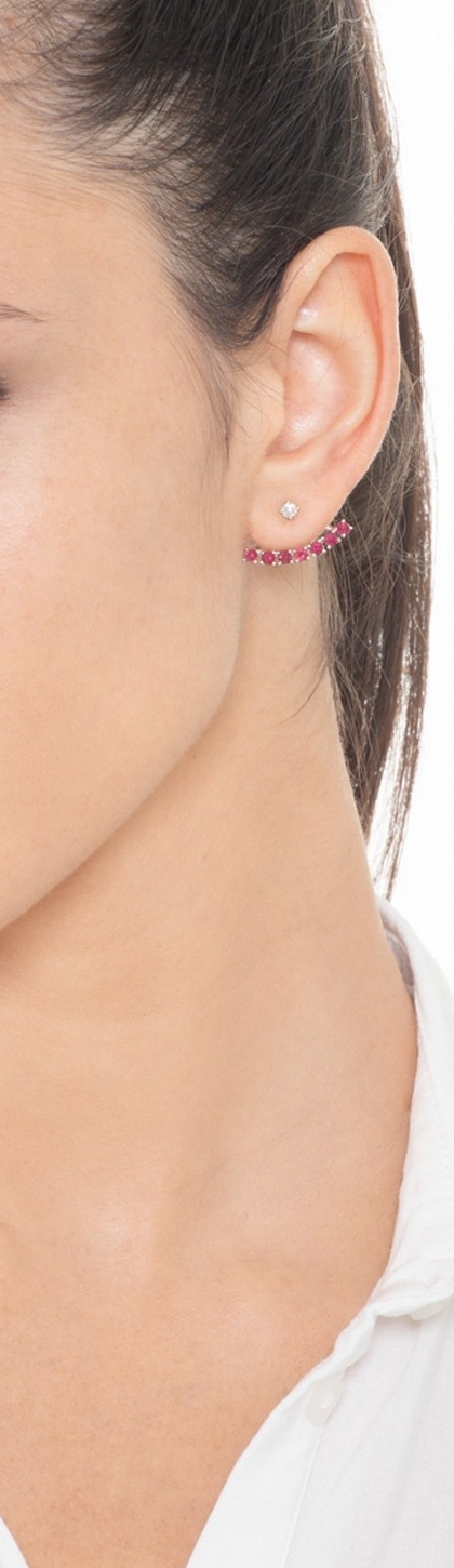 Pendiente individual en oro blanco 18 quilates con rubíes y diamante