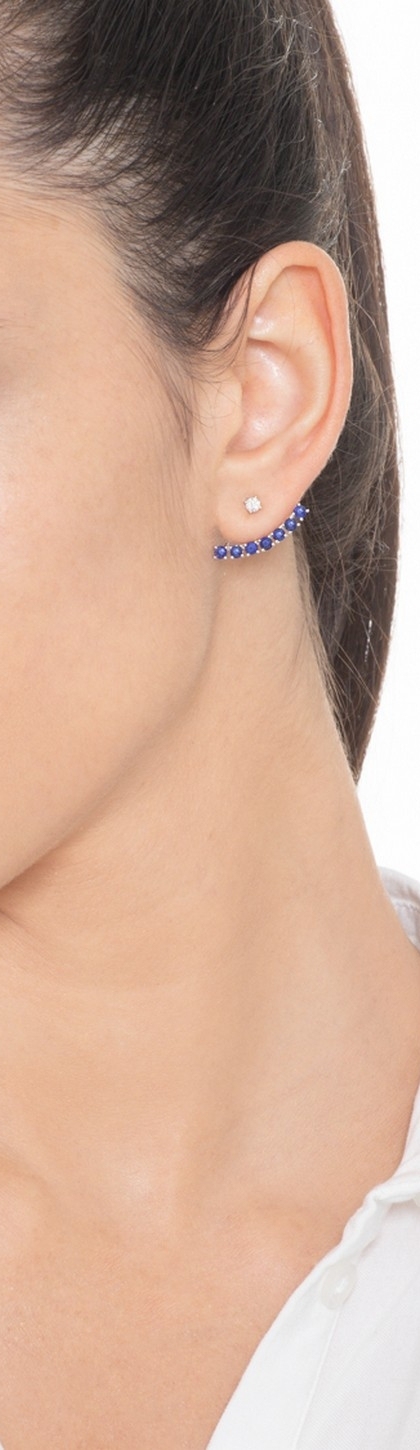 Pendiente individual en oro blanco 18 quilates con zafiros azules y diamante
