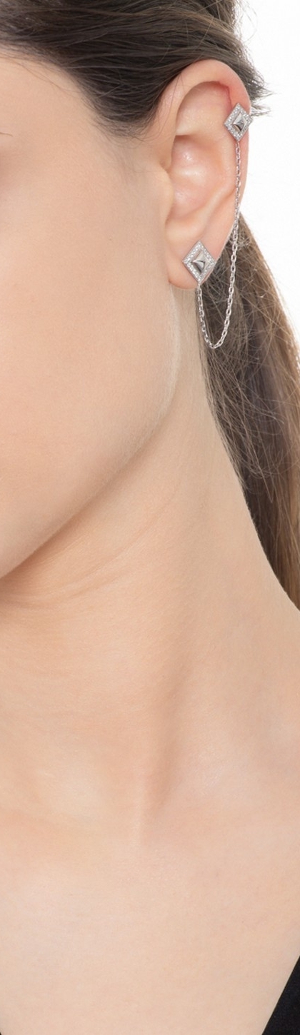 Pendiente individual oro blanco 18 quilates con cadenita y diamantes