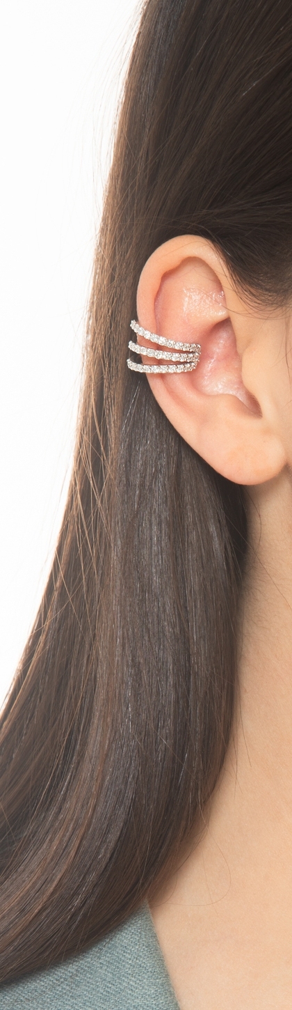 Pendiente mono en oro blanco de 18k con tres hileras de diamantes
